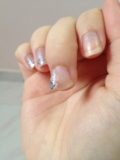 Went to remove my nail polish, bracing myself for a round of intensive session, cause nail polish with glitters are usually difficult to remove...and i found out that....it can be peeled off!! It does not comes off easily but you can actually remove most of them manually without the help of a nail polish remover. After peeling what i can, i removed the leftovers with the nail remover and it was a breeze~!